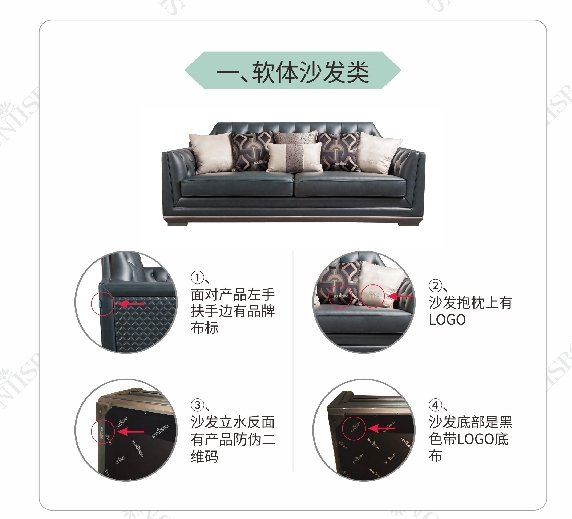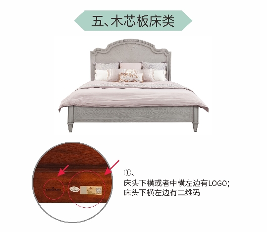 (1)床头下横或者中横左边有LOGO; 床头下横左边有防伪码。